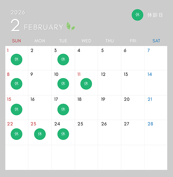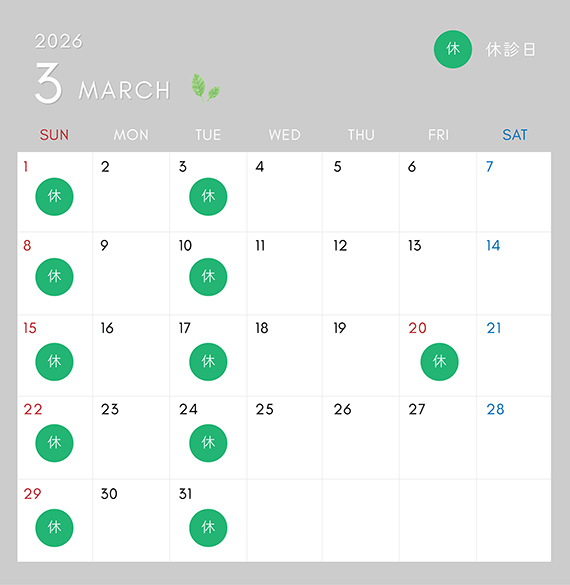 ■火曜・日曜・祝日は休診日となっております。